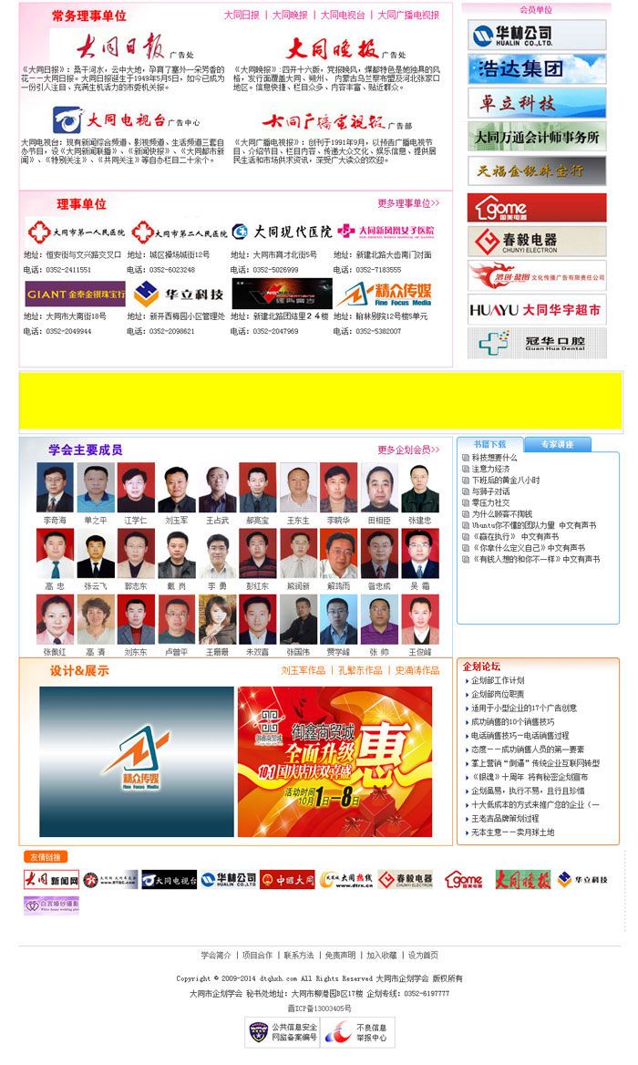 大同市企劃學(xué)會(huì)(DESA)是經(jīng)山西省大同市民政局、社科聯(lián)審批注冊(cè)成立的地區(qū)性企劃組織、具有獨(dú)立法人資格的非營(yíng)利性社會(huì)團(tuán)體。2008年末開始籌備,2009年3月初正式注冊(cè)成立。是集合我市主流媒介、企業(yè)經(jīng)營(yíng)管理者、商業(yè)策劃者、理論研究者等四個(gè)層面為一體的一個(gè)溝通交流、相互