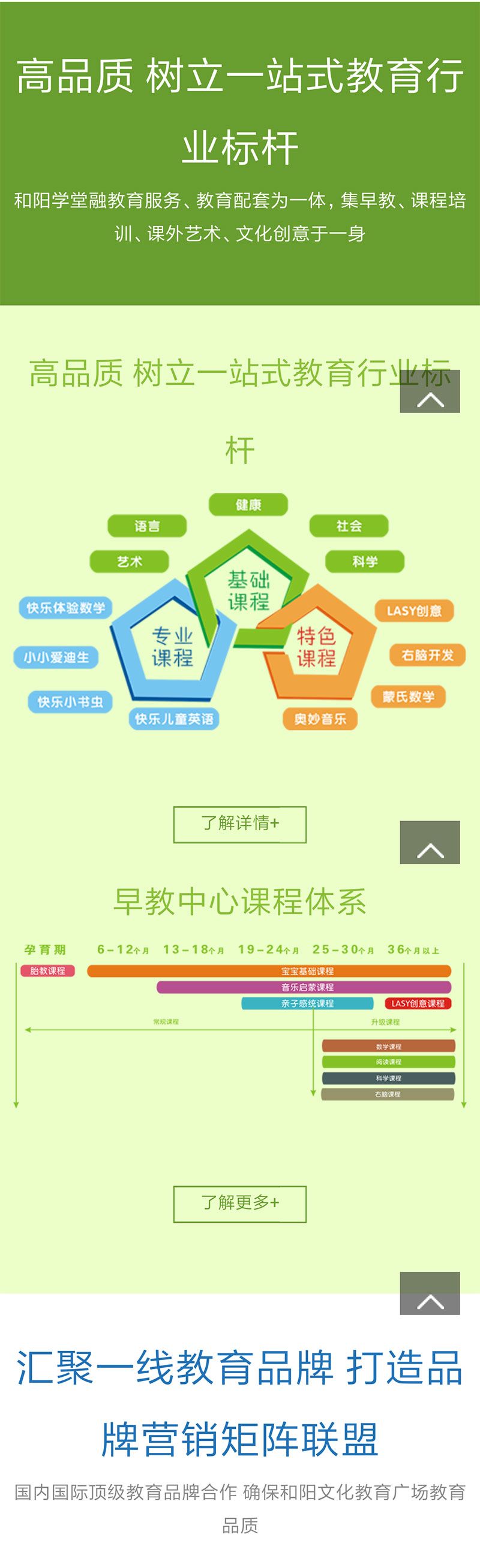 和陽文化教育廣場手機(jī)版采用了響應(yīng)式網(wǎng)站設(shè)計,自適應(yīng)手機(jī)和平板模式, 完美兼容IE7+、Firefox、Chrome、360瀏覽器等;主流瀏覽器; 頁面簡潔清爽大氣,容易管理!